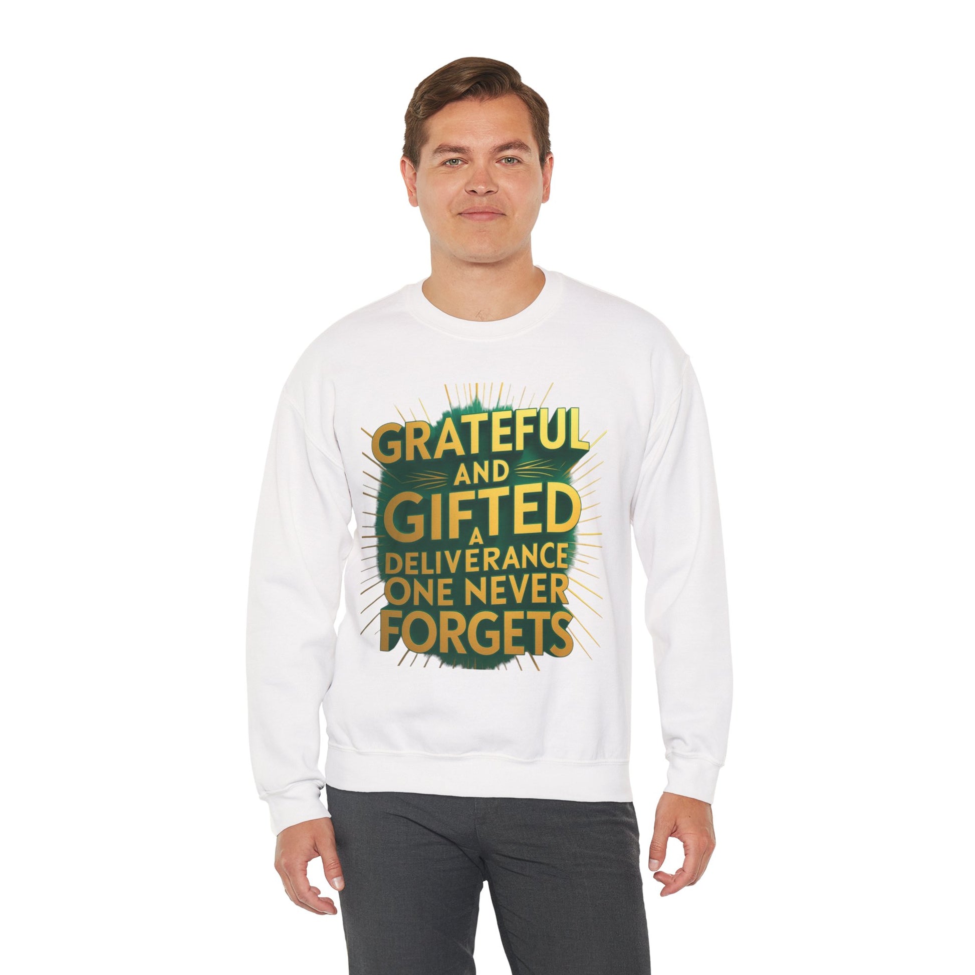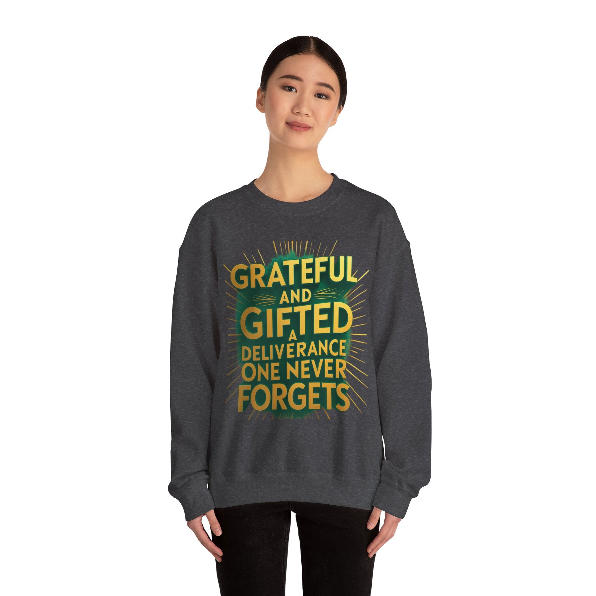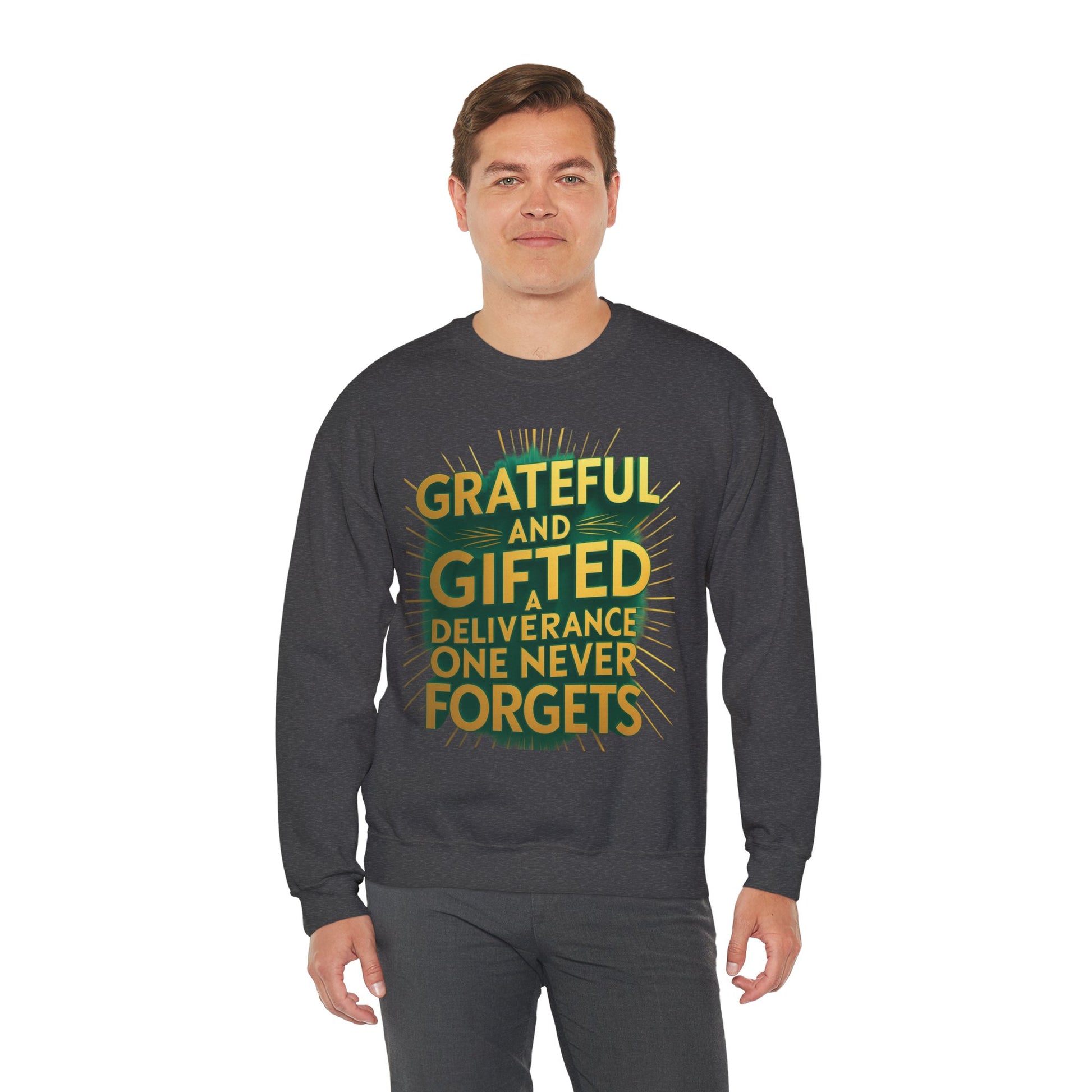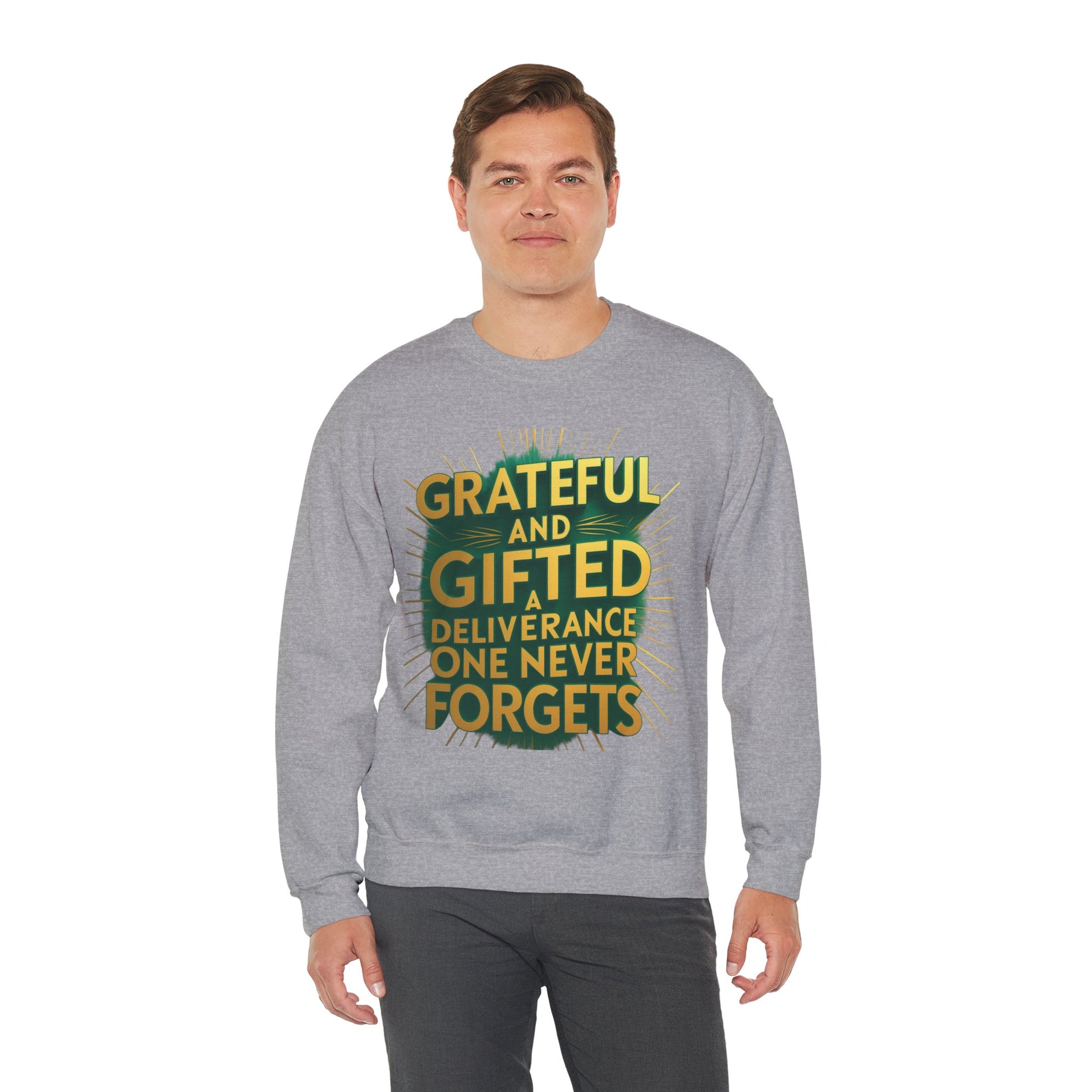 Grateful & Gifted Crewneck Sweatshirt, Unisex Gift for Thanksgiving, Cozy Relaxed Fit, Holiday Clothing, Inspirational Apparel