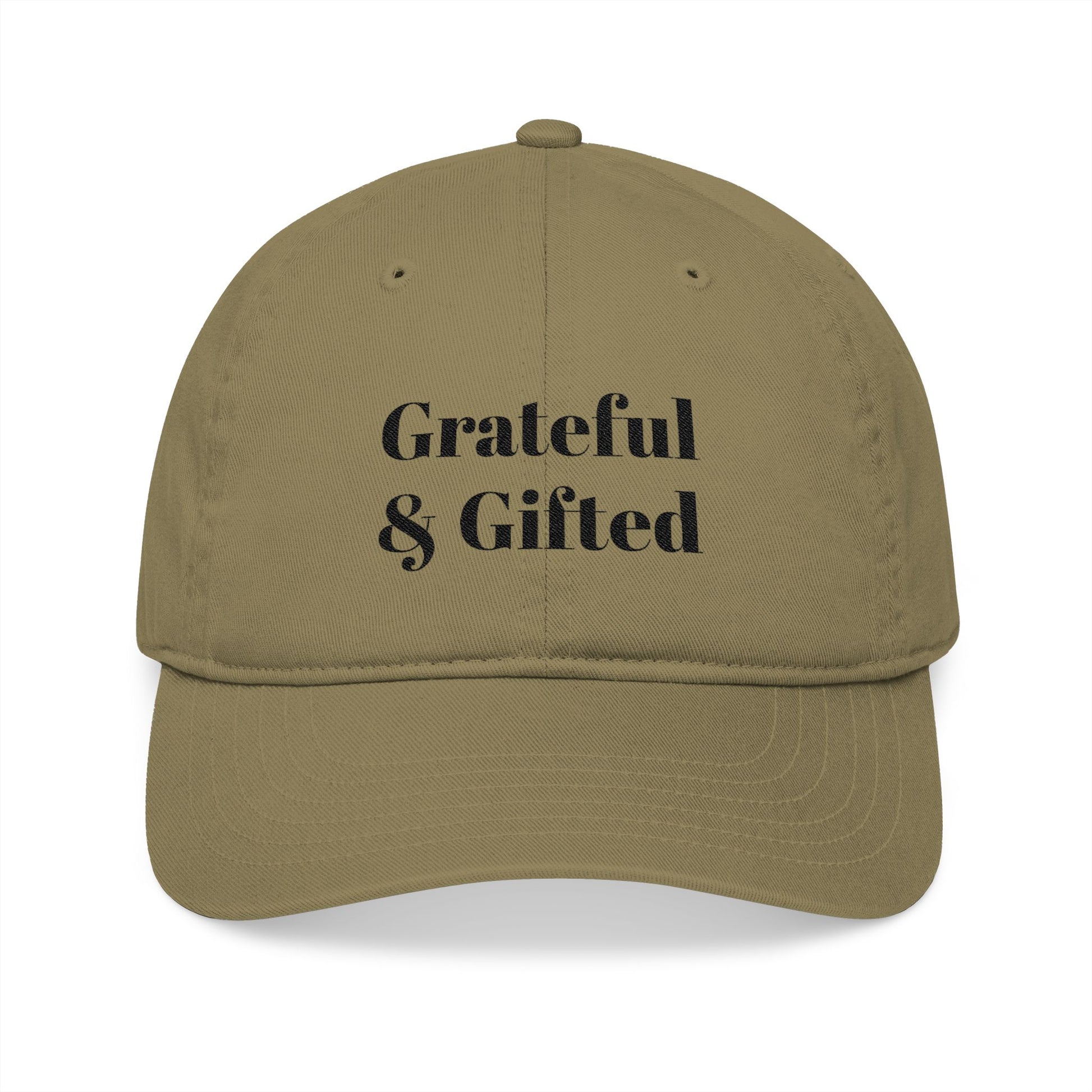 Grateful & Gifted Organic Baseball Cap, Eco-Friendly Hat, Embroidered Adjustable Cap, Gift for Friends, Casual Style Accessory
