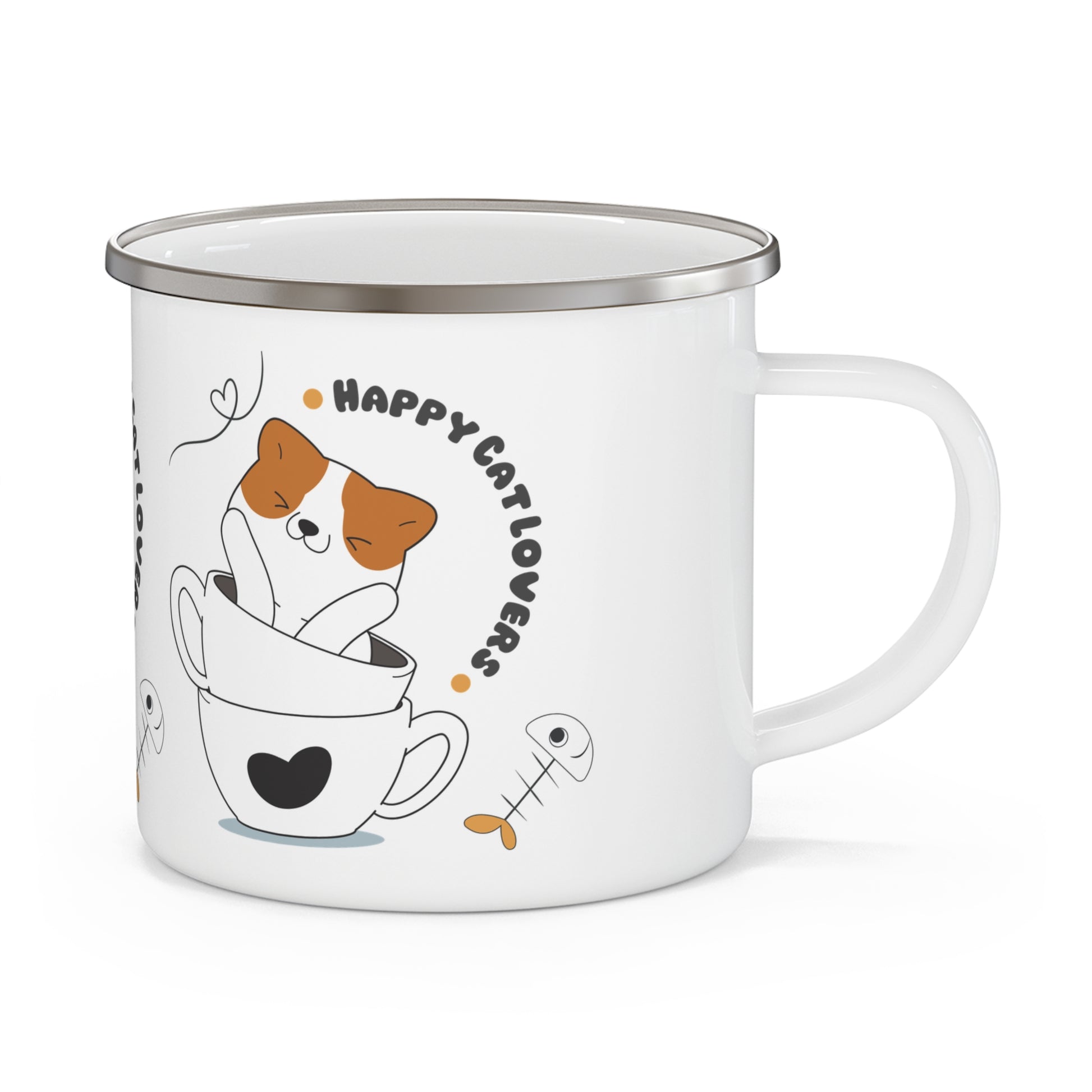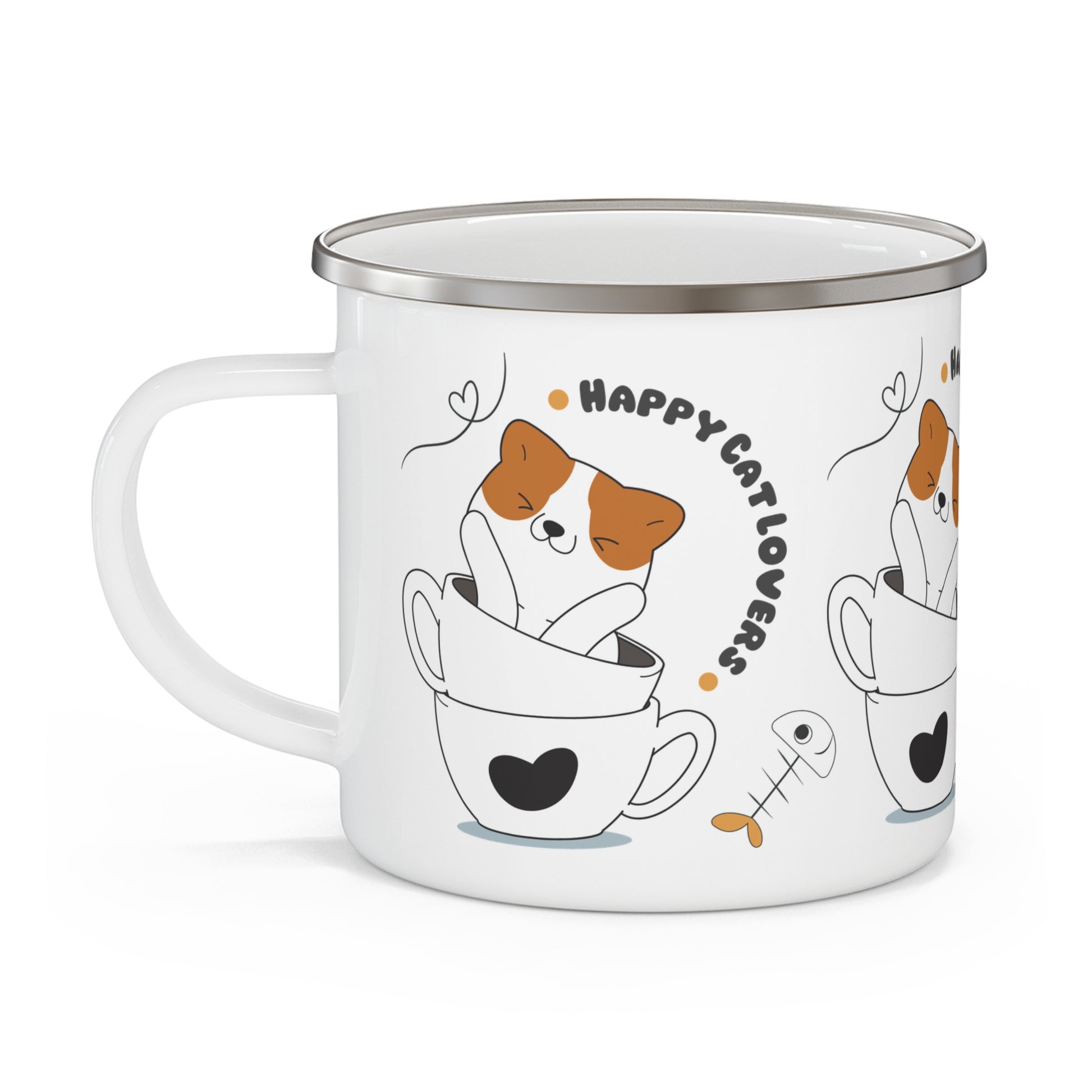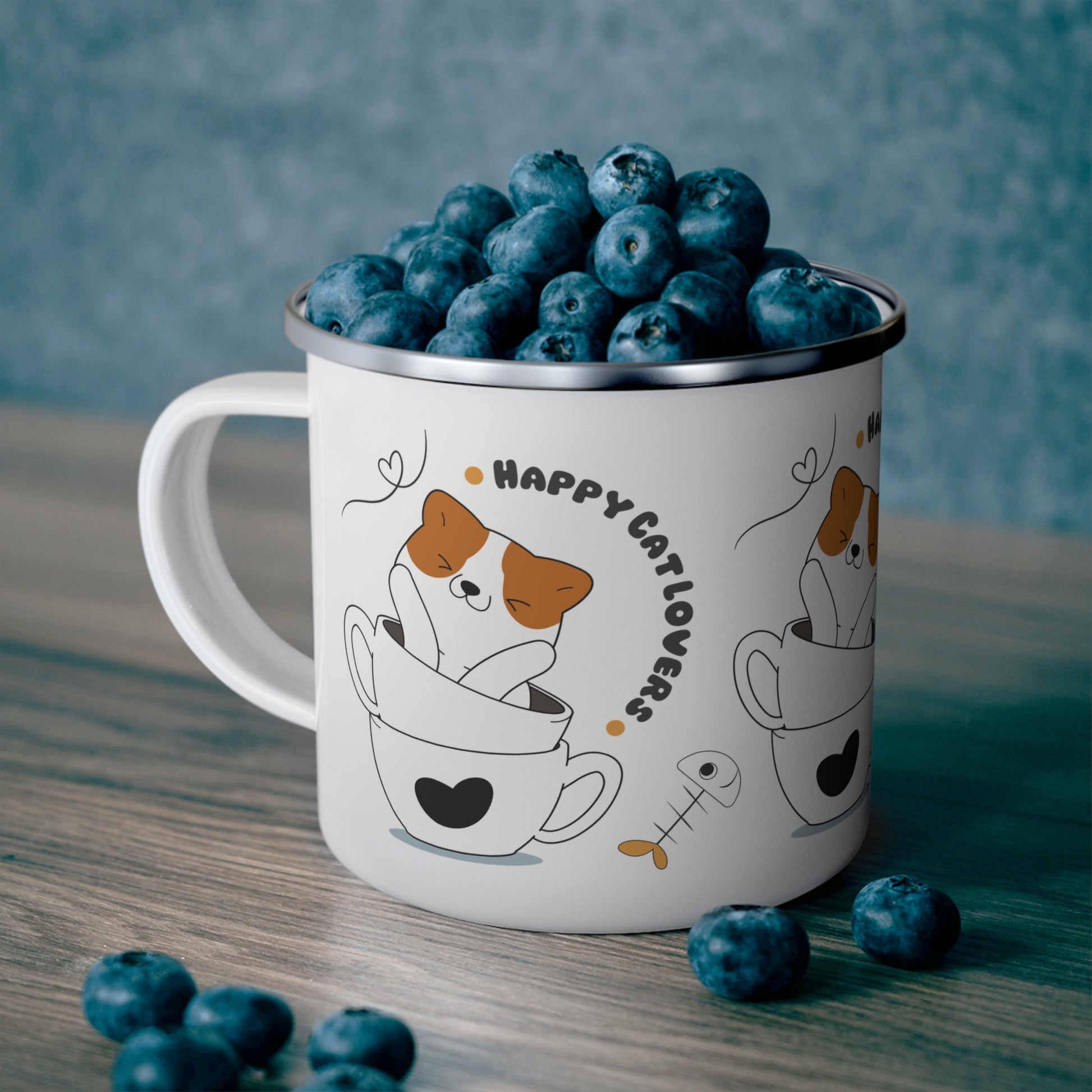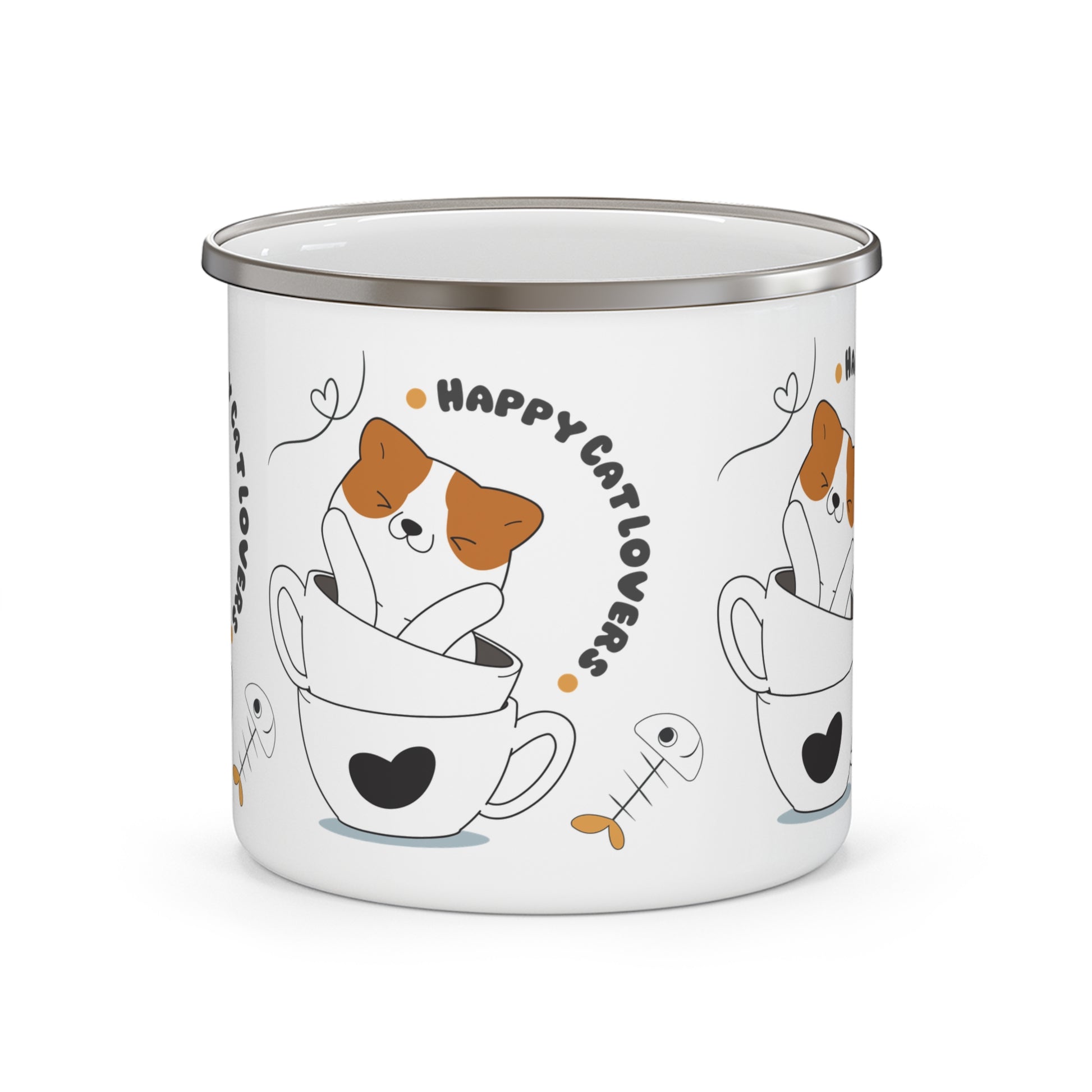 Happy Cat Lovers Enamel Camping Mug, Cute Cat Mug, Outdoor Adventure Coffee Cup, Cat Lover Gift, Funny Camping Mug, Pet Parent Accessories