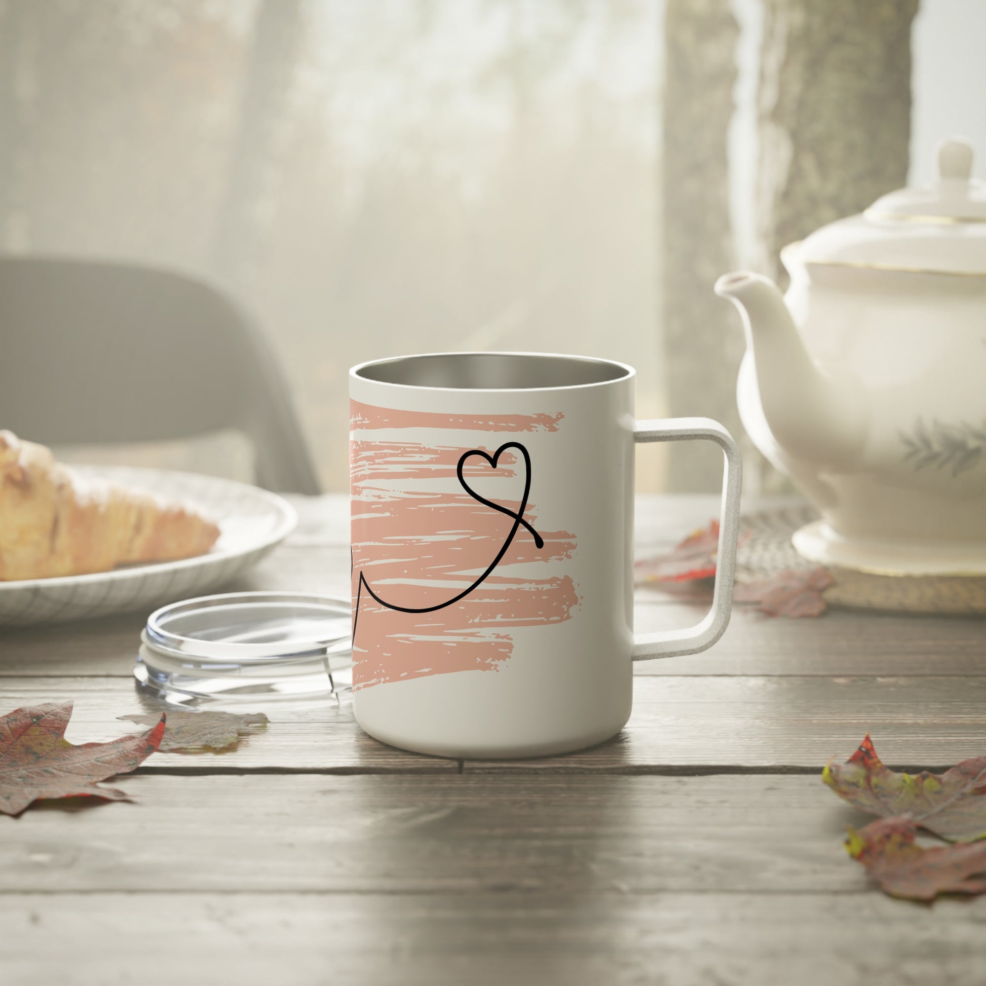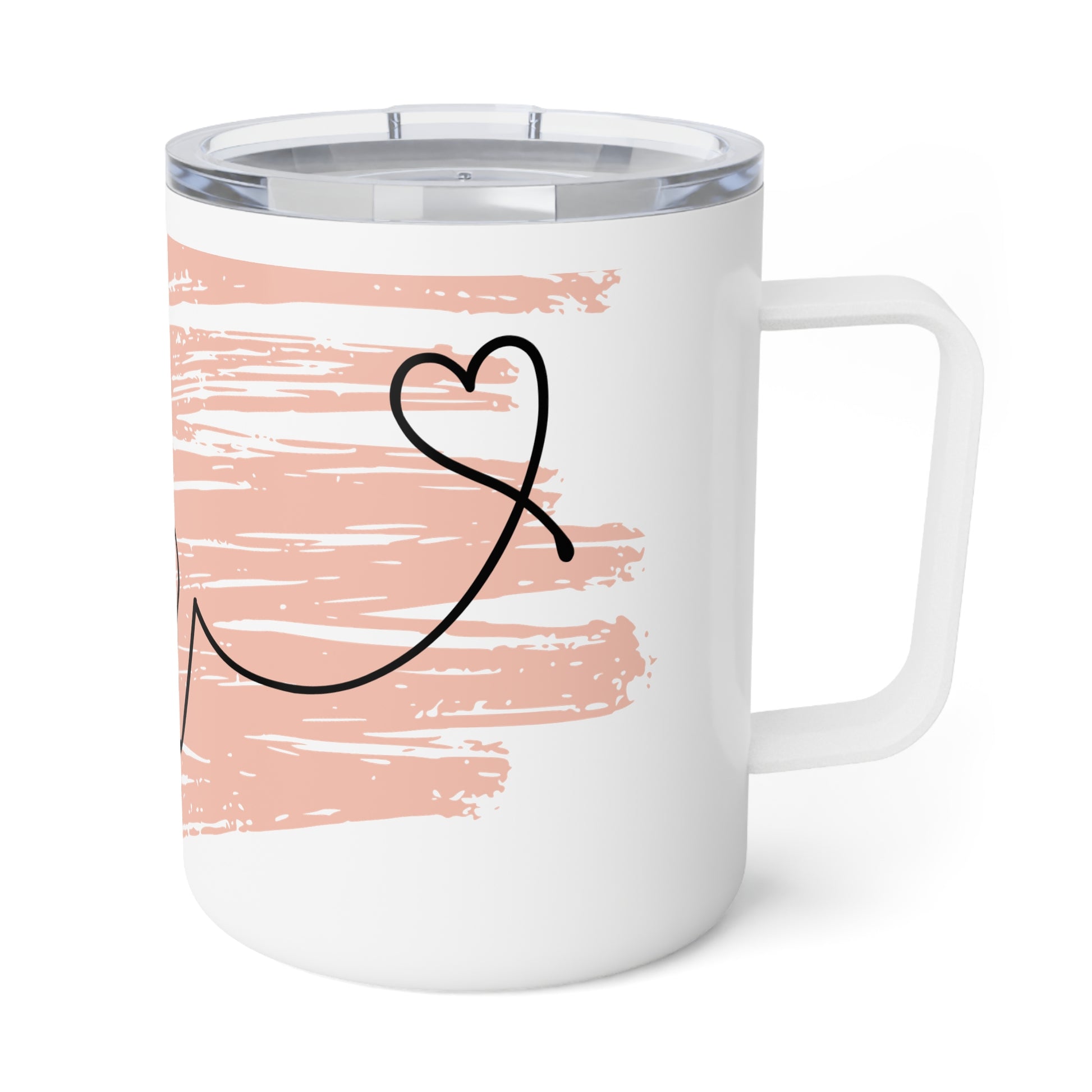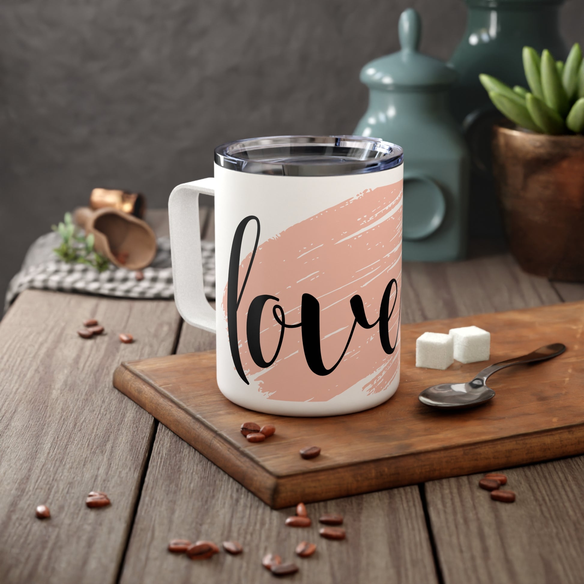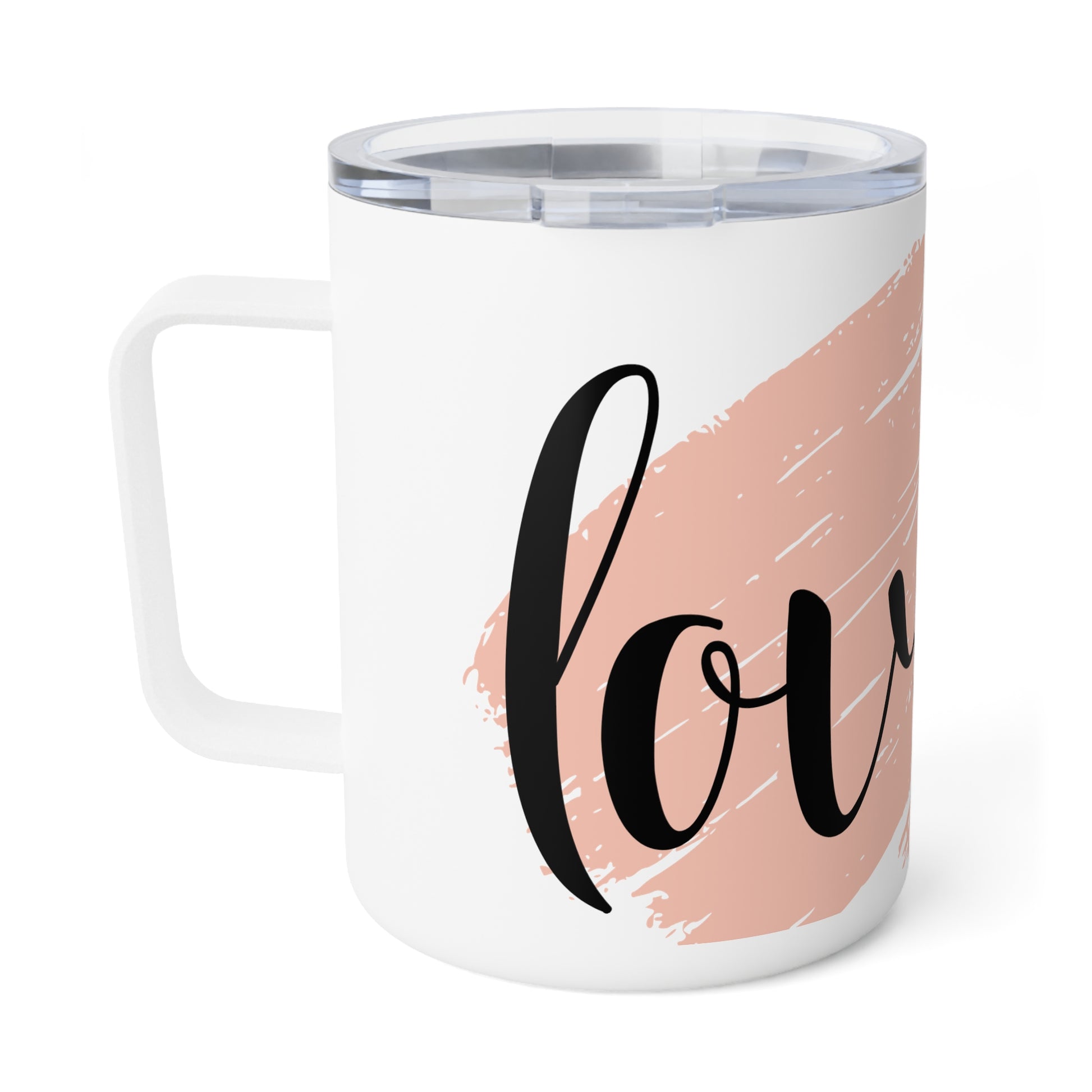 Insulated Coffee Mug with Love Design, 10oz Travel Mug, Cute Gift for Her, Coffee Lover Mug, Valentine's Day Gift, Personalized Coffee Cup