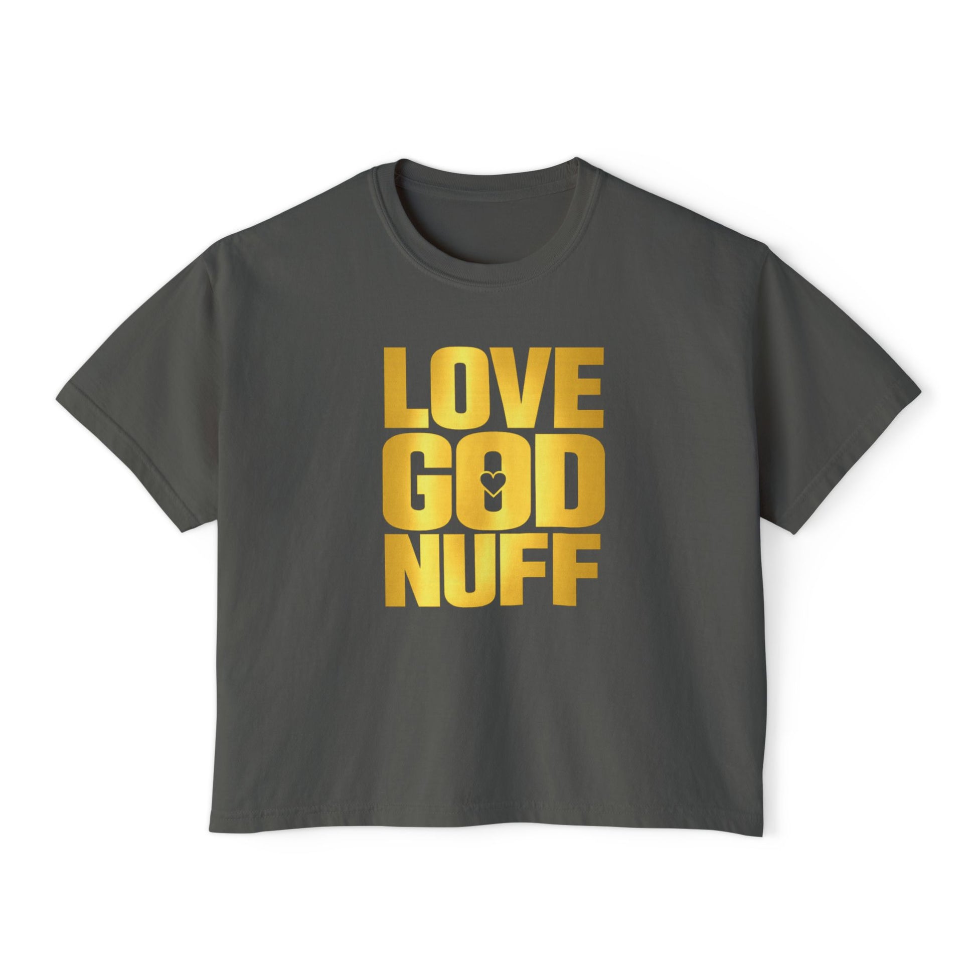 This cropped boxy tee speaks like a quiet proclamation — warm, confident, and easygoing. The bold gold lettering folds sunlight into a soft, lived-in cotton canvas, the colorway and pigment-dyed texture giving it a vintage, worn-in soul. It sits slightly cropped with a relaxed boxy silhouette, landing at the waist for an effortless, layered look. Wear it with high-waist jeans, a denim jacket, or over a slip dress for mornings when you want comfort that still carries meaning. The heavier ring-spun cotton gives the shirt structure and weight, so the message holds its shape while the shoulder-to-shoulder tape keeps the neckline steady through many wears and washes. Small shade variations from the pigment dye add personality — no two tees feel exactly the same.