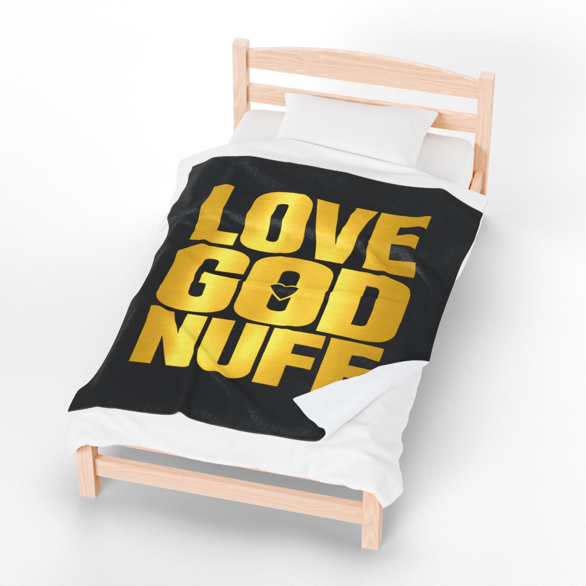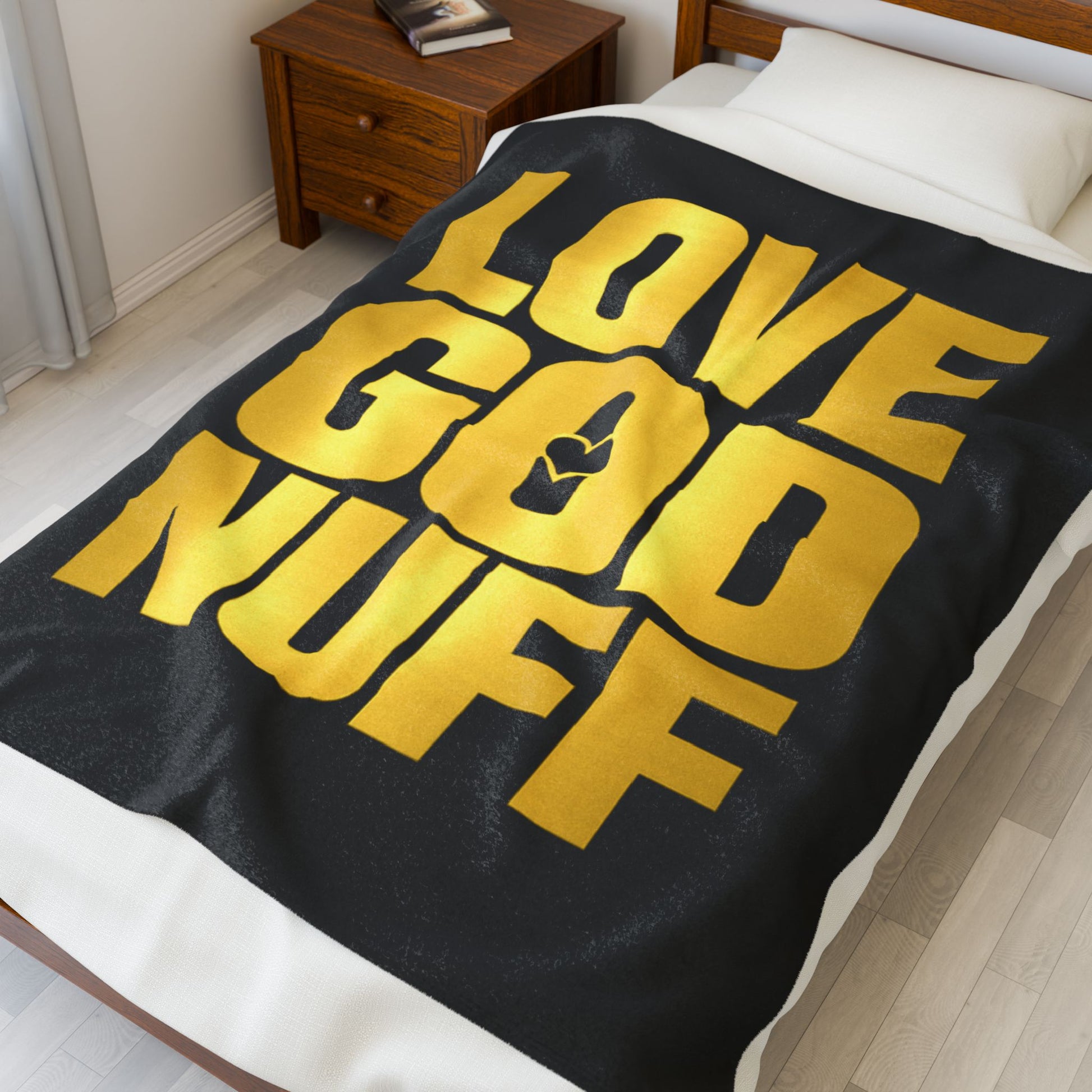 Love God Nuff Velveteen Plush Blanket — Gold Typography Christian Throw