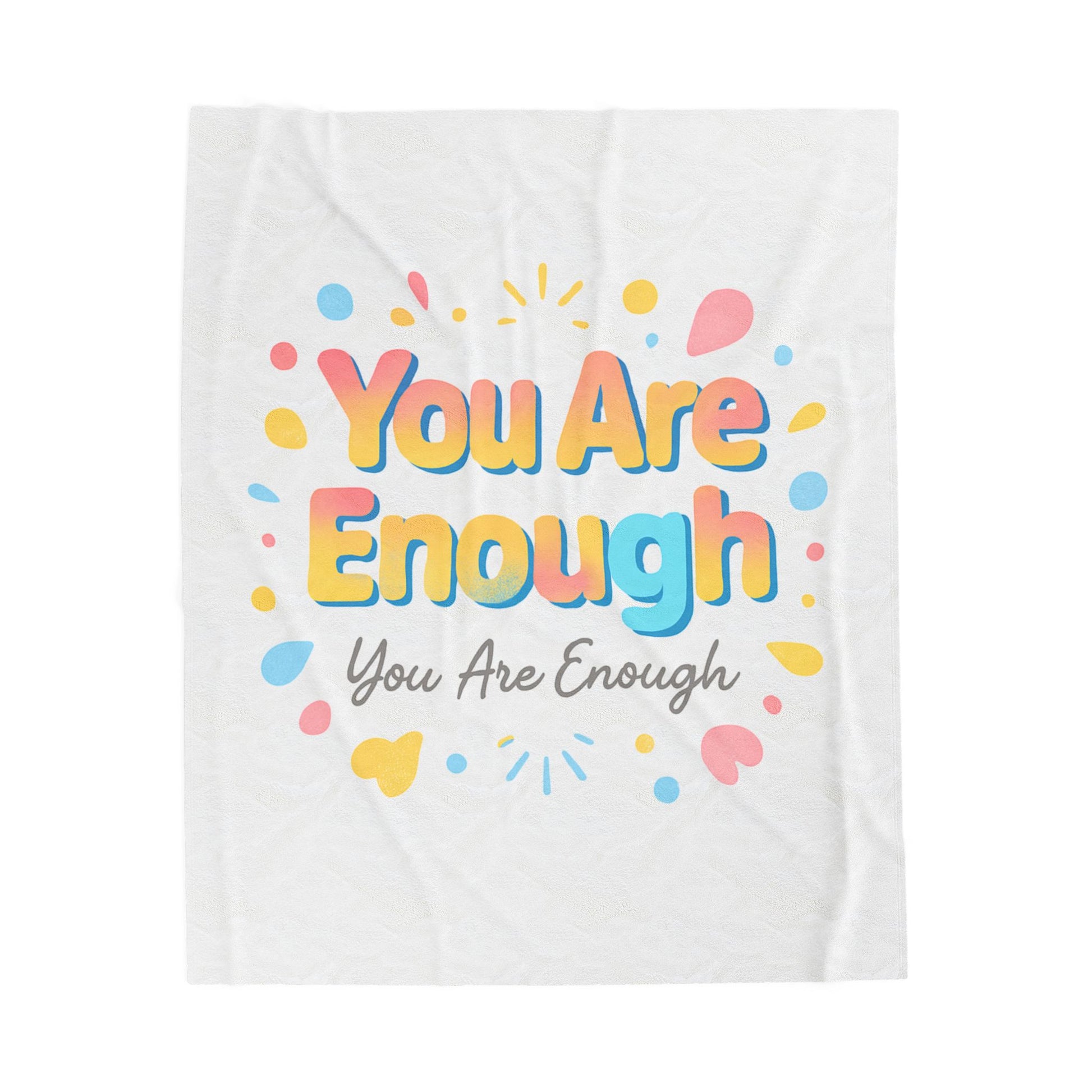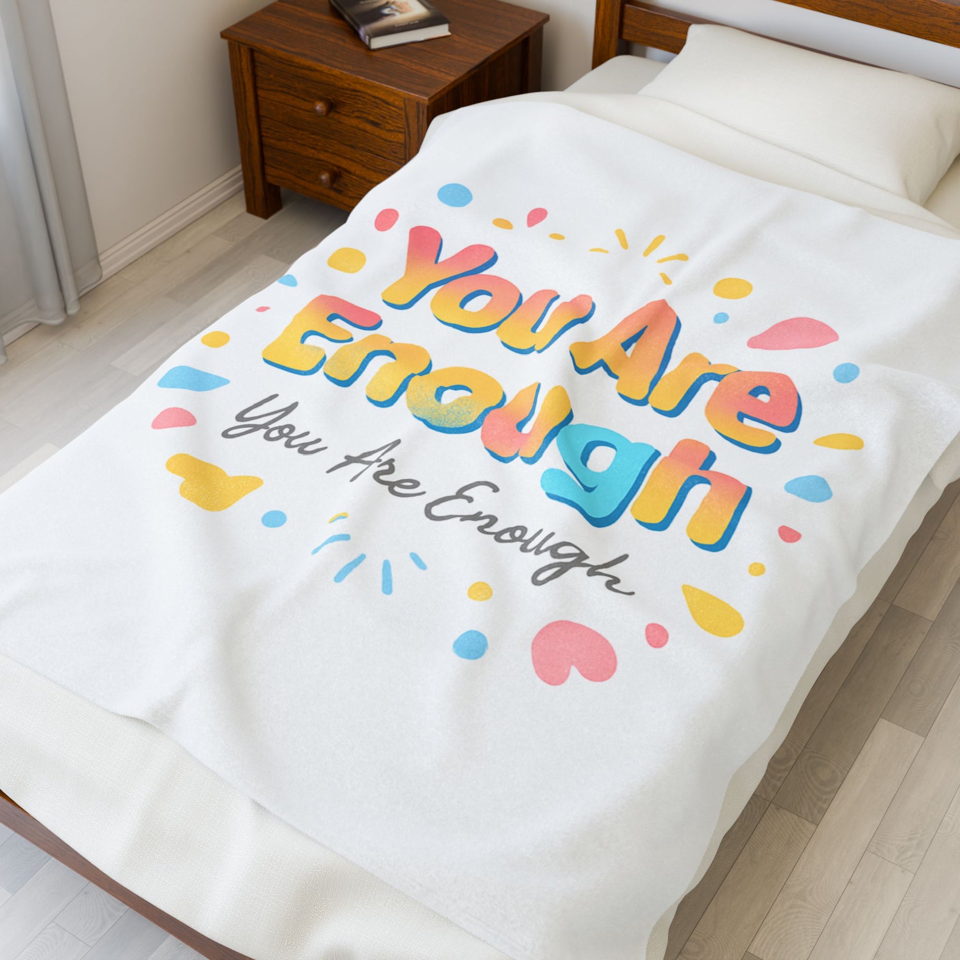 You Are Enough Plush Blanket — Inspirational Velveteen Throw for Self-Care & Gifts